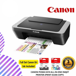 CANON PIXMA E410 ALL-IN-ONE INKJET PRINTER (PRINT-SCAN-COPY) Include Black & Color Ink [ NO WIFI]