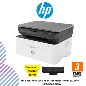 HP Laser MFP 136a All in One Mono Printer (4ZB85A) – Print, Scan, Copy