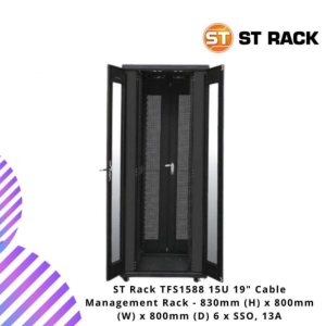 ST Rack TFS1588 15U 19″ Cable Management Rack – 830mm (H) x 800mm (W) x 800mm (D) 6 x SSO, 13A