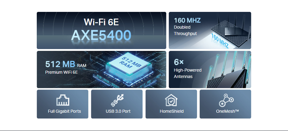 AXE5400 Tri-Band – AXE5400 Tri-Band Wi-Fi delivers Wi-Fi speeds up to 5400 Mbps.