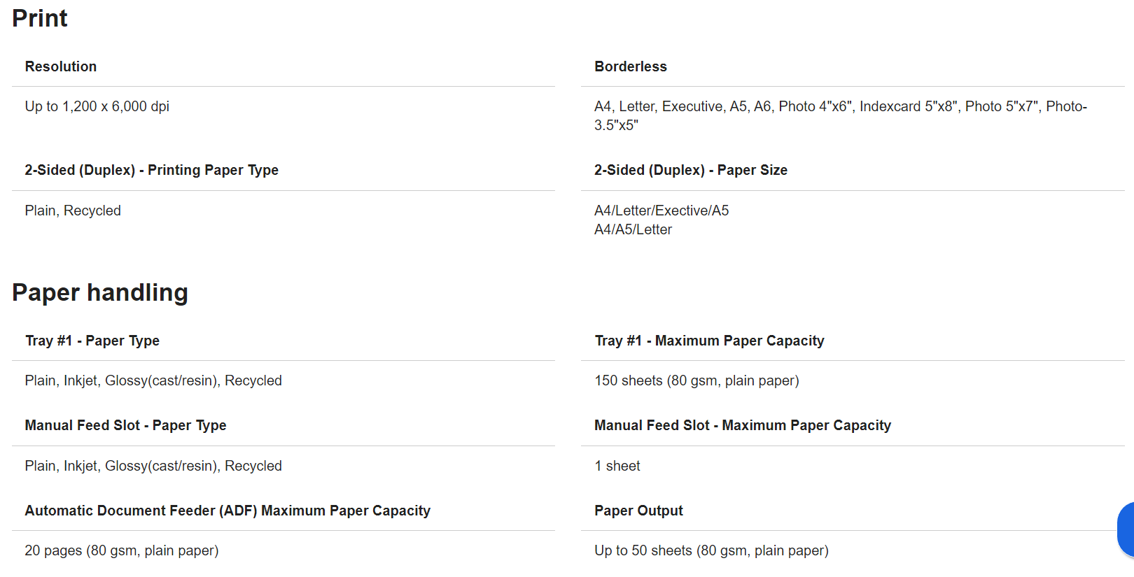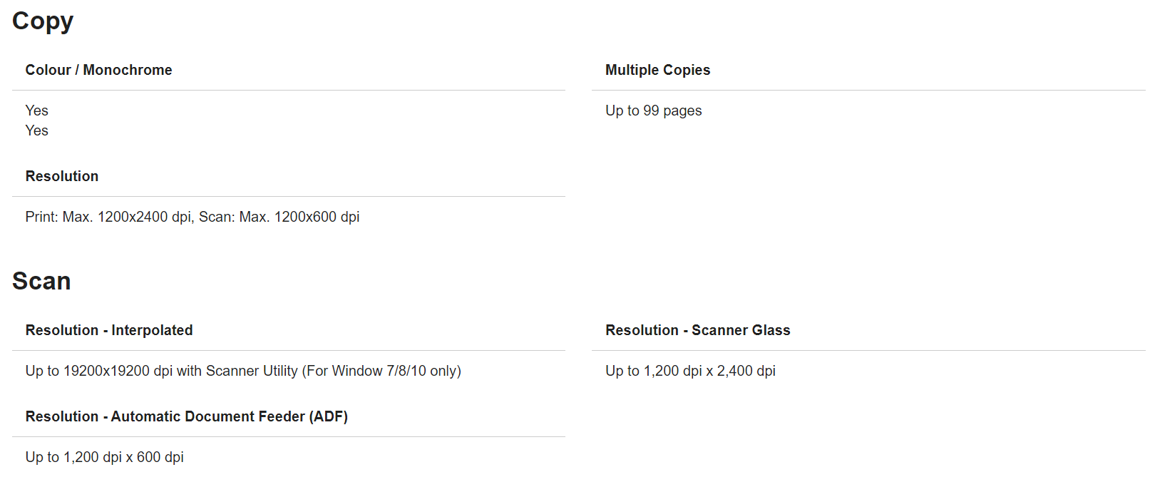 Handle a variety of print jobs with a 150 sheets paper tray adjustable for different paper sizes and an additional single-sheet manual feed slot for various paper types. Moreover, the 20 sheets Auto Document Feeder (ADF) allows for convenient scanning and copying multiple pages.