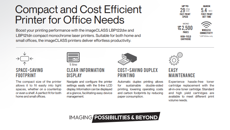 Canon imageCLASS LBP121dn Mono Laser Printer – Print Only