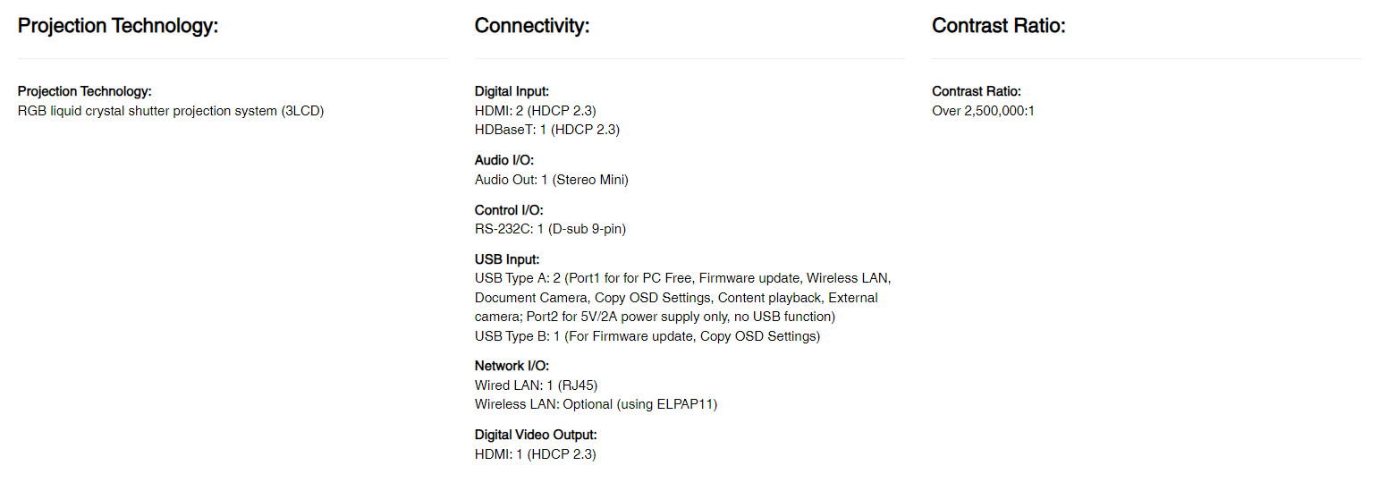 Simplify multi-projector functions** with optional attachable ELPEC01 camera.