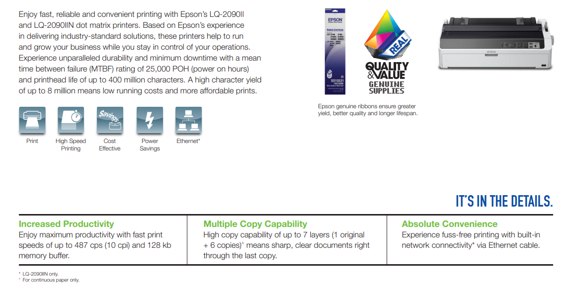 Epson LQ-2090IIN 24-pin Wide Carriage Dot Matrix Printer