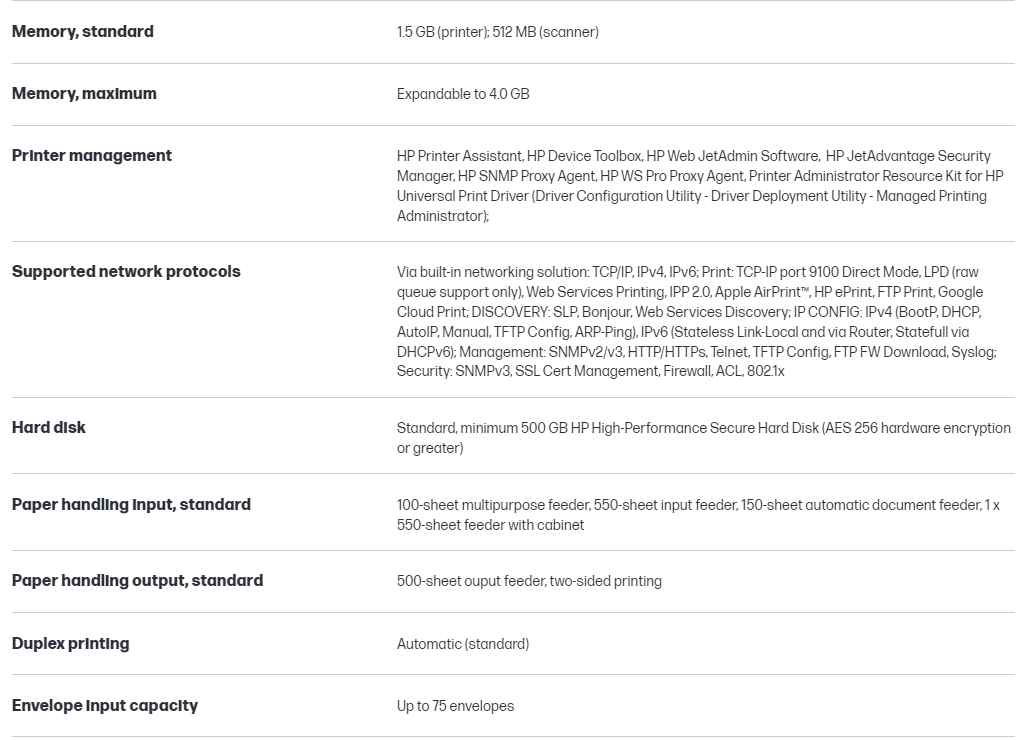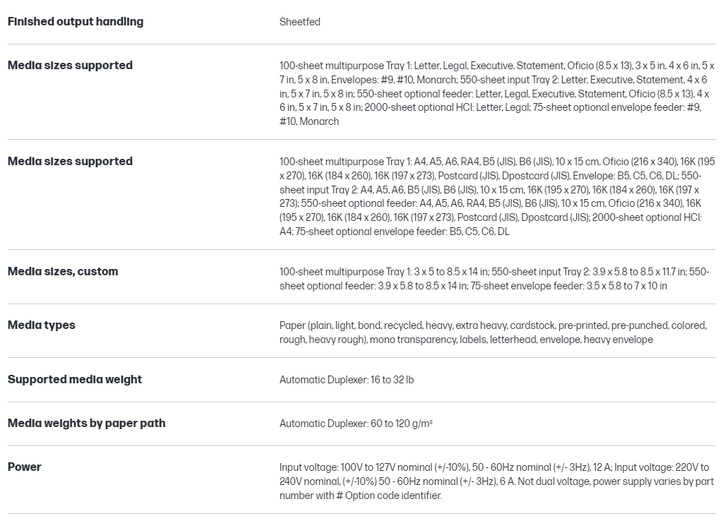 • 3 paper trays (standard); 150-sheet ADF; Uses toner with JetIntelligence