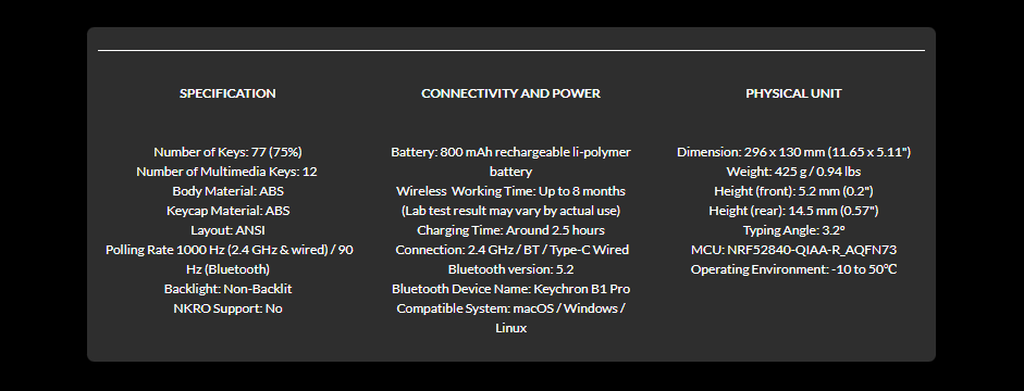 Low-Profile Mechanical Switches: Provides a comfortable typing experience with reduced key travel.