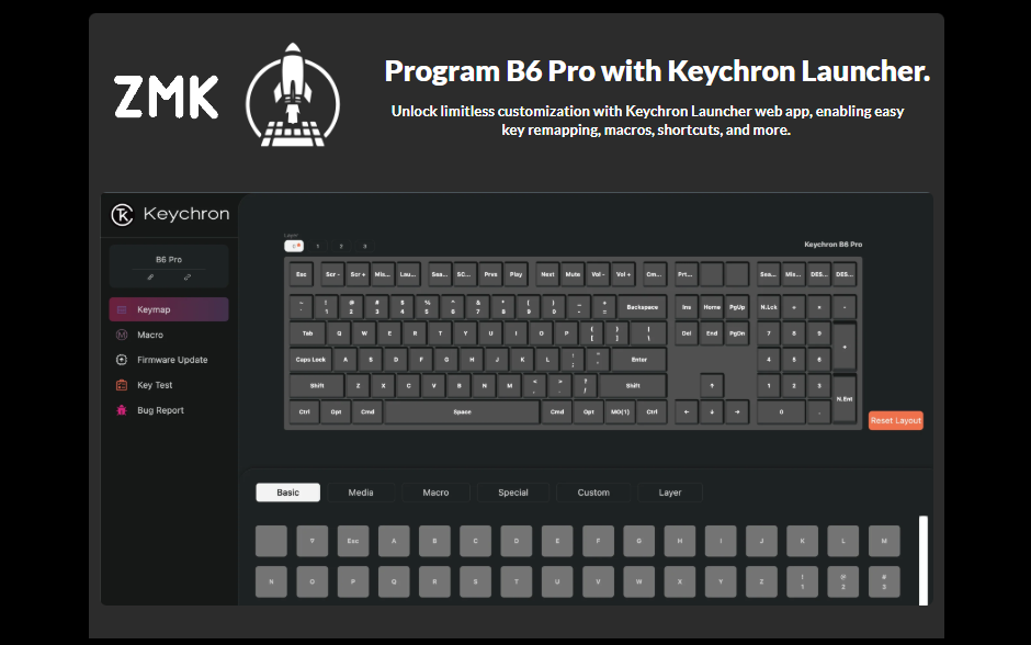 Home/COMPUTER ACCESSORIES/ COMPONENTS/KEYBOARD/Keychron B6 Pro Ultra-Slim Wireless Keyboard Keychron B6 Pro Ultra-Slim Wireless KeyboardRM 169.00 Design: Ultra-slim and compact form factor. Sleek, minimalist design suitable for both work and travel. Connectivity: Triple-mode connectivity: Bluetooth 5.1 (up to 3 devices). 2.4GHz wireless via USB receiver. Wired USB-C connection. Switches: Low-profile mechanical switches (options may vary: tactile, linear, or clicky). Provides a comfortable typing experience with reduced key travel. Keycaps: Durable, slim-profile keycaps. Available in different layouts (e.g., ANSI, ISO). Battery Life: Built-in rechargeable battery. Long-lasting battery life (exact hours depend on usage and backlight settings). Backlighting: RGB backlighting with multiple lighting effects. Adjustable brightness levels. Compatibility: Works with Windows, macOS, iOS, and Android. Dedicated macOS/Windows keycaps included. Portability: Lightweight and easy to carry. Ideal for on-the-go use or desk setups. Additional Features: Hot-swappable switch option (allows customization of switches). Aluminum frame for durability. SKU: N/A Categories: COMPUTER ACCESSORIES/ COMPONENTS, KEYBOARD Color Choose an optionSpace GreyIvory WhiteClear Keychron B6 Pro Ultra-Slim Wireless Keyboard quantity Add to cart Description Additional information Reviews (0) Weight N/A Dimensions N/A Color Space Grey, Ivory White Reviews There are no reviews yet. Be the first to review “Keychron B6 Pro Ultra-Slim Wireless Keyboard”Cancel ReplyYour email address will not be published. Required fields are marked *Your rating * Rate… Perfect Good Average Not that bad Very poor Name *Email *Your review * Save my name, email, and website in this browser for the next time I comment. Submit Related products ORICO 2020U3-EP 2.5-Inch Hard Drive Enclosure RM 28.00 Add to cart ORICO M2P2-C3-C NVME M.2 SSD Duplicator RM 350.00 Add to cart LOGITECH K120 USB KEYBOARD RM 33.00 Add to cart Razer Seiren Mini – Portable Mini Mic (RZ19-03450100-R3M1) RM 180.00 Add to cart