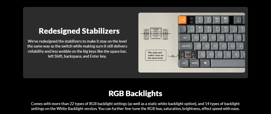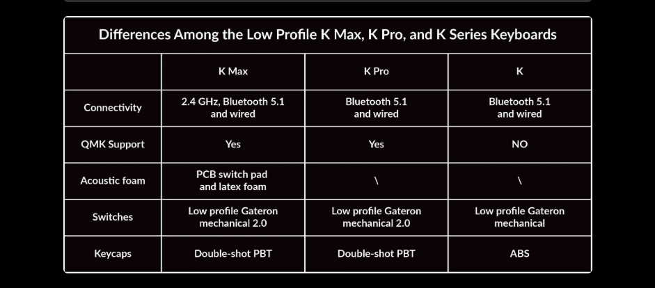 Form Factor: Compact 84-key layout (75% size) with a sleek, space-saving design. Connectivity: Tri-mode connectivity: Bluetooth 5.1, 2.4GHz wireless, and USB-C wired. Supports up to 3 devices via Bluetooth for seamless switching. QMK/VIA Support: Fully programmable with QMK firmware and VIA software for custom key mapping, macros, and lighting effects. Switch Options: Hot-swappable sockets (5-pin) for easy switch customization. Compatible with a wide range of mechanical switches (Keychron optical or Gateron mechanical switches). Keycaps: Double-shot PBT keycaps for durability and resistance to shine. macOS and Windows layouts included. Battery Life: Built-in 4000mAh rechargeable battery. Up to 200 hours of usage (wireless, backlight off) on a single charge. Backlighting: RGB backlighting with multiple lighting effects and customization via QMK/VIA. Build Quality: Aluminum frame for a premium feel and durability. Adjustable feet for ergonomic typing angles. Compatibility: Works with Windows, macOS, Linux, iOS, and Android. Additional Features: N-key rollover (NKRO) for precise and accurate typing/gaming. Includes a USB-C to USB-A cable, 2.4GHz wireless dongle, and keycap/switch puller.