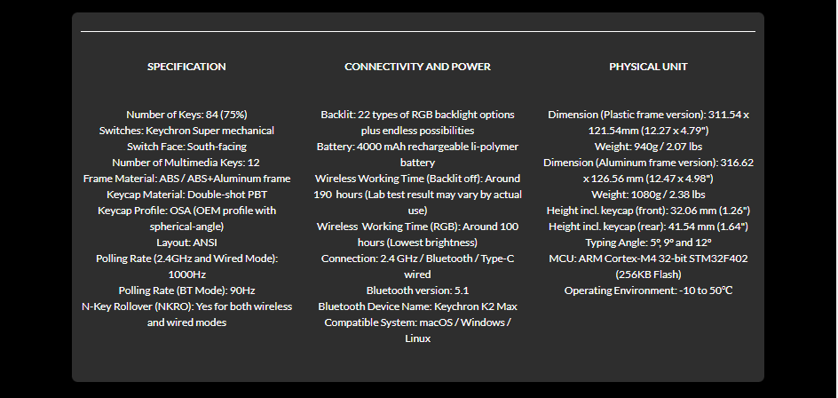 Dual System Compatibility: Works seamlessly with both macOS and Windows operating systems, with dedicated keycaps and shortcuts for each.