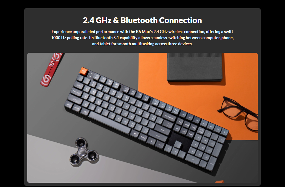 Low-Profile Keycaps: Comes with low-profile keycaps for a sleek and ergonomic typing experience.