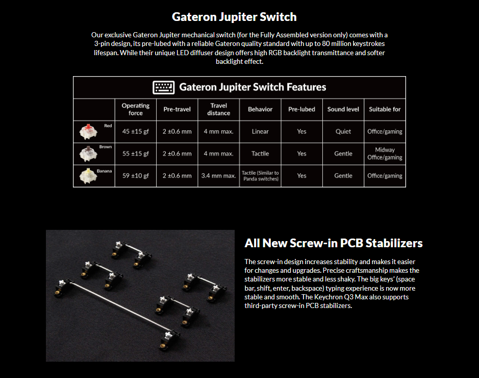 Weight N/A Dimensions N/A Switches Red, Brown, Yellow Reviews There are no reviews yet. Be the first to review “Keychron Q3 Max QMK/VIA Wireless Custom Mechanical Keyboard”Cancel ReplyYour email address will not be published. Required fields are marked *Your rating * Rate… Perfect Good Average Not that bad Very poor Name *Email *Your review * Save my name, email, and website in this browser for the next time I comment. Submit
