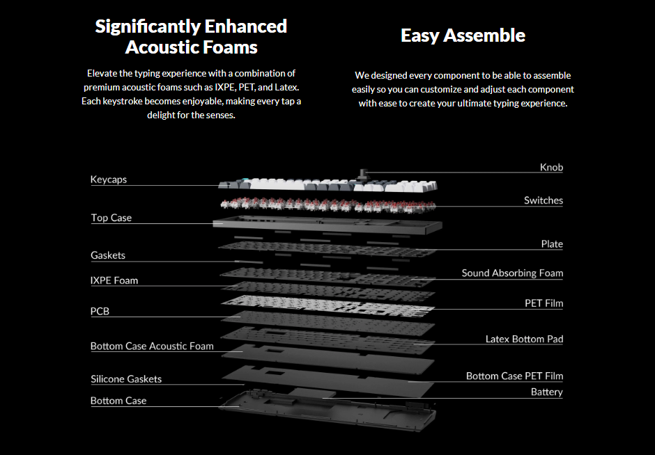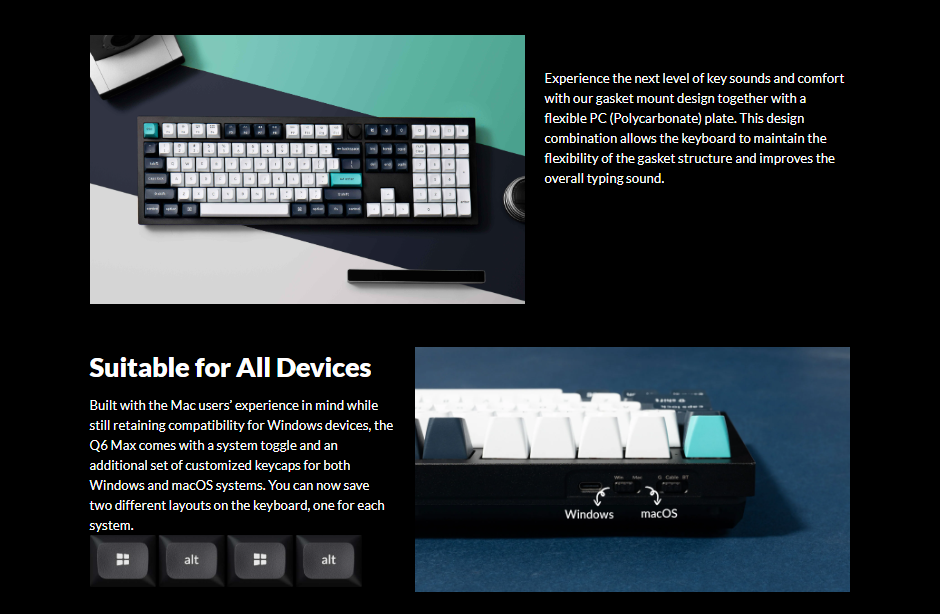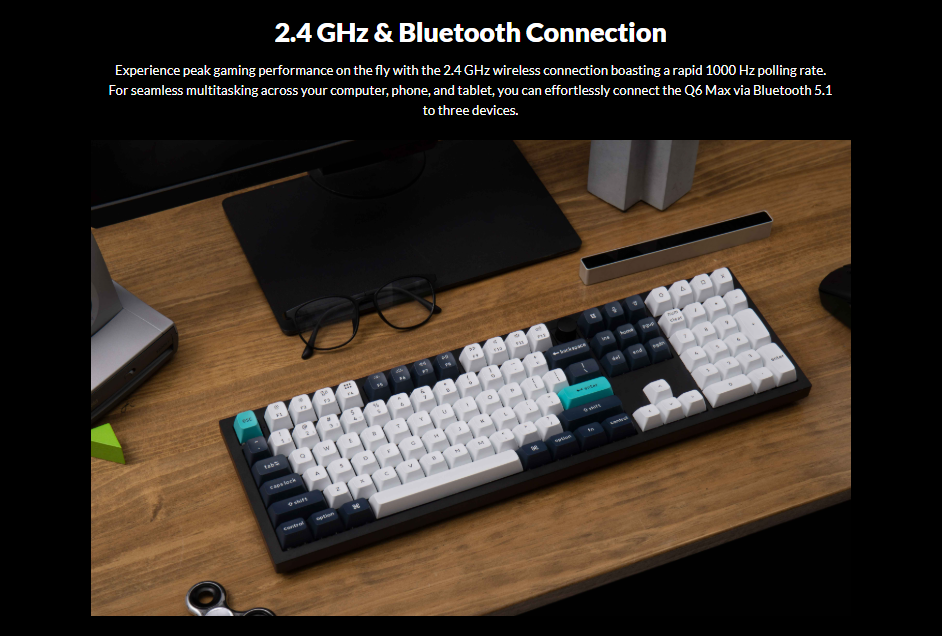 Layout: Full-size (104/105 keys) with a dedicated numpad. Build Quality: Aluminum frame with a premium, durable design. Connectivity: Tri-mode connectivity: Bluetooth 5.1, 2.4GHz wireless, and USB-C wired. QMK/VIA Support: Fully programmable via QMK and VIA for custom key mapping and macros. Switch Options: Hot-swappable PCB (5-pin) compatible with a wide range of mechanical switches. Pre-lubed Keychron K Pro switches available (e.g., Brown, Red, Blue). Battery Life: Up to 200 hours of usage (wireless mode, backlight off). Lighting: RGB backlighting with multiple effects, customizable via VIA. Keycaps: Double-shot PBT keycaps for durability and resistance to shine. Gasket Mount: Gasket-mounted design for a softer typing feel and reduced noise. Additional Features: Multi-device pairing (up to 3 devices via Bluetooth). macOS and Windows compatibility with dedicated switch. Adjustable feet for ergonomic typing angles.