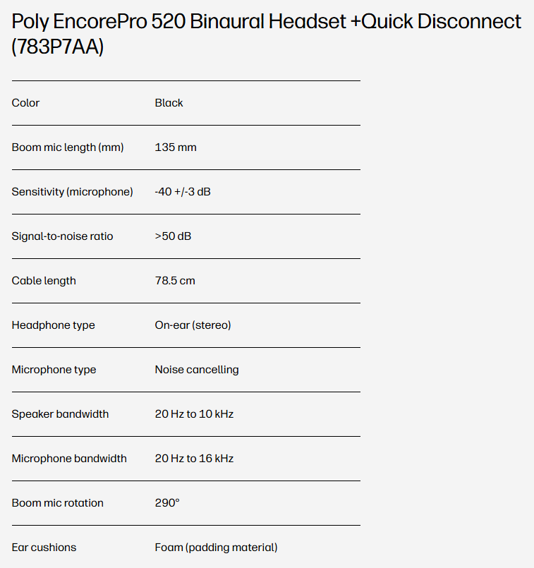Be the first to review “Poly EncorePro 520 Binaural Headset +Quick Disconnect (783P7AA)”