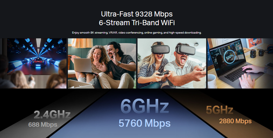 Blazing-Fast 9328 Mbps Tri-Band WiFi 7: Enables your devices to run at full speed. Enjoy fluent 4K/8K streaming, immersive AR/VR gaming, and blazing-fast downloads.†