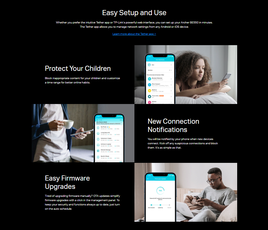 Easy Setup and Use: Network management has never been easier with the Tether app.