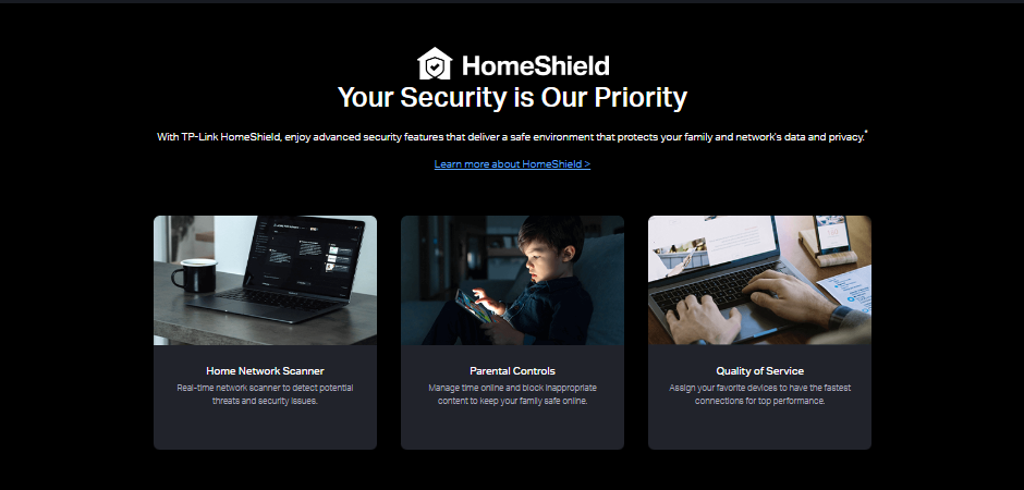 TP-Link HomeShield: Enhanced security defends against the latest cyber threats.*