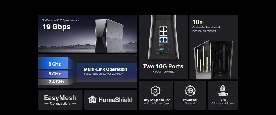 Lightning-Fast 19 Gbps Tri-Band WiFi 7: Enables your devices to run at full speed. Enjoy fluent 4K/8K streaming, immersive AR/VR gaming, and lightning-fast downloads.†‡