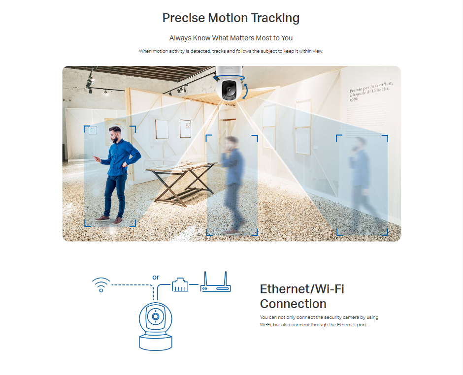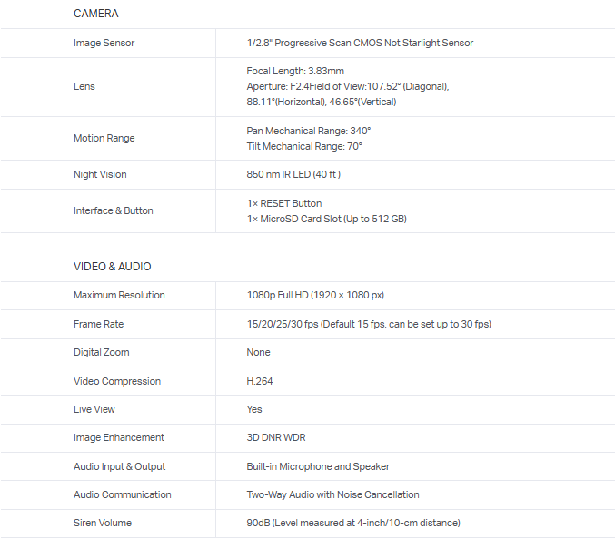360° horizontal pan and 114° vertical tilt for complete coverage of your indoor space.