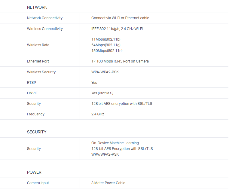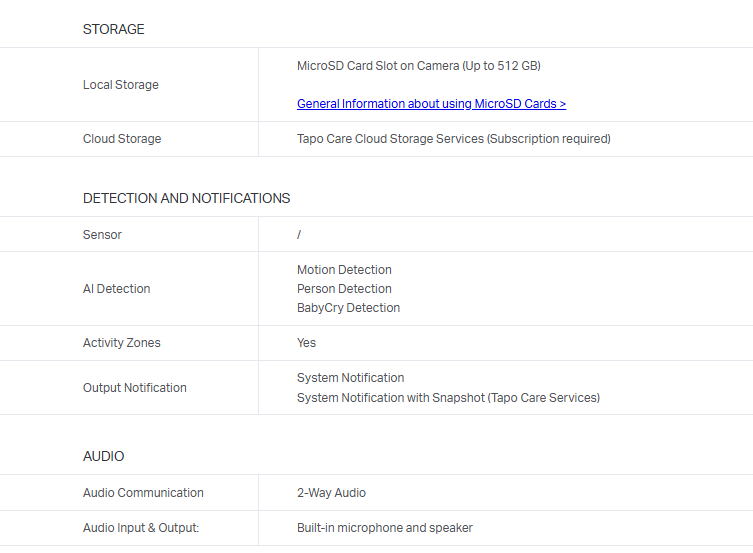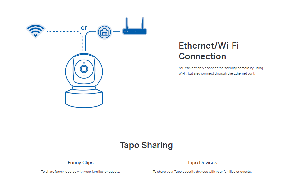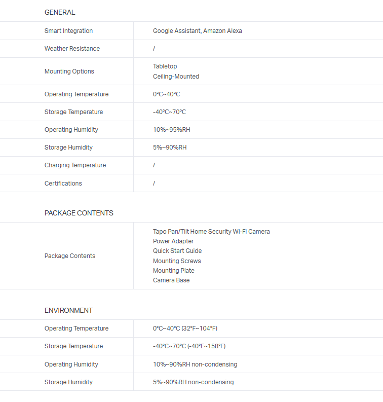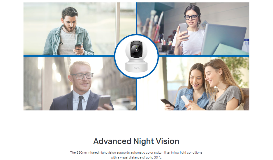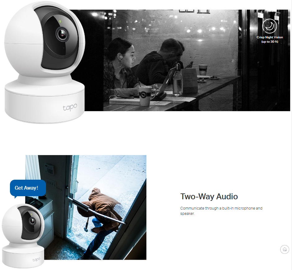 Pan/Tilt Functionality: 360° horizontal pan and 114° vertical tilt for complete coverage of your indoor space. Control the camera’s movement remotely via the Tapo app. 1080p Full HD Resolution: Delivers clear and detailed video footage. Infrared Night Vision: Provides night vision up to 30 feet (9 meters) in complete darkness. Automatically switches to night mode in low-light conditions. Motion Detection & Alerts: Sends real-time alerts to your smartphone when motion is detected. Customizable motion detection zones to reduce false alerts. Two-Way Audio: Built-in microphone and speaker for clear communication through the Tapo app. Local and Cloud Storage: Supports microSD card storage (up to 128GB) for local recording. Optional cloud storage for additional backup (subscription required). Tapo App Control: Easy setup and control via the Tapo app (available for iOS and Android). View live footage, adjust settings, and receive alerts. Compact Design: Sleek and unobtrusive design for easy placement in any room. Compatibility: Works with Alexa and Google Assistant for voice control.
