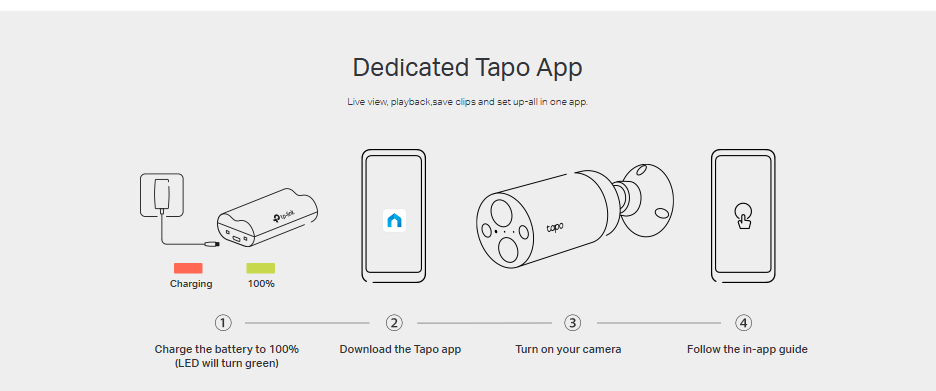 Wire-Free Design: Completely wireless camera powered by a rechargeable battery. Easy to install and move around without the need for wiring. 1-Camera System: Includes 1 camera and 1 hub for centralized control and storage. 1080p Full HD Resolution: Delivers clear and detailed video footage. Infrared Night Vision: Provides night vision up to 30 feet (9 meters) in complete darkness. Automatically switches to night mode in low-light conditions. Motion Detection & Alerts: Sends real-time alerts to your smartphone when motion is detected. Customizable motion detection zones to reduce false alerts. Two-Way Audio: Built-in microphone and speaker for clear communication through the Tapo app. Weatherproof (IP65 Rating): Designed to withstand outdoor conditions like rain, dust, and extreme temperatures. Local and Cloud Storage: Supports microSD card storage (up to 128GB) for local recording. Optional cloud storage for additional backup (subscription required). Smart Hub Included: The hub connects the camera to your Wi-Fi network and stores footage locally. Works even if the internet goes down (local storage only). Tapo App Control: Easy setup and control via the Tapo app (available for iOS and Android). View live footage, adjust settings, and receive alerts. Compatibility: Works with Alexa and Google Assistant for voice control.
