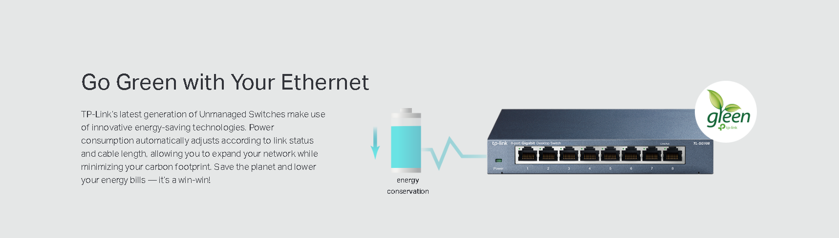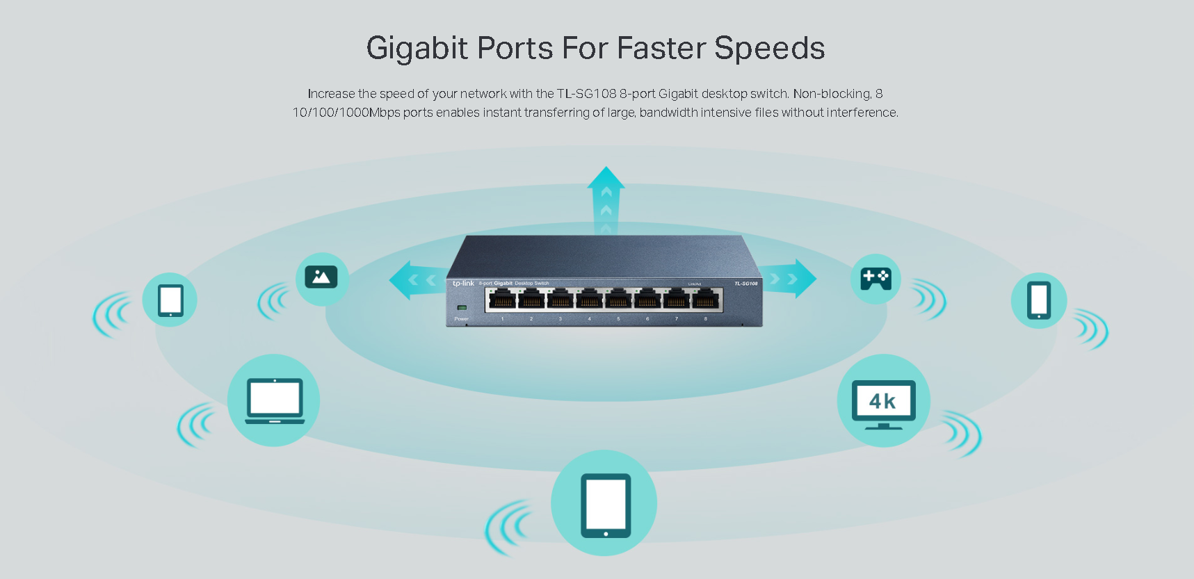 The TL-SG108 Desktop Switch provides you an easy way to increase the speed of your network server and backbone connections. Whether you are at home or in the office, the TL-SG108 can always help you deal with your business quickly and easily.