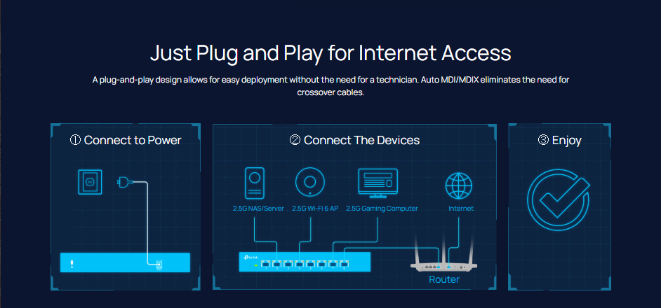 8-Port Gigabit Ethernet Switch: Provides 8 Gigabit Ethernet ports for high-speed data transfer. Easy Smart Management: Offers basic managed features like VLAN, QoS, and IGMP Snooping. Plug-and-Play: No configuration required for basic operation; simply connect your devices. Energy Efficient: Automatically adjusts power consumption based on link status and cable length. Durable Metal Housing: Provides robust protection and heat dissipation. Compatibility: Works with most Ethernet-enabled devices.