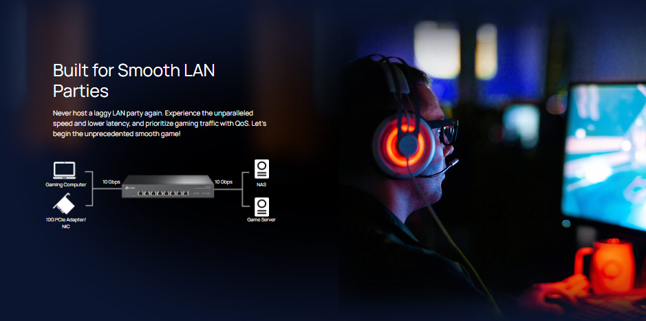 8-Port 10G/Multi-Gig Ethernet Switch: 2 × 10G SFP+ Ports: Supports high-speed fiber connections. 6 × 2.5G RJ45 Ports: Supports Multi-Gig speeds up to 2.5Gbps. Unmanaged Switch: Plug-and-play operation with no configuration required. High-Speed Connectivity: Ideal for bandwidth-intensive applications like gaming, streaming, and large file transfers. Energy Efficient: Advanced energy-saving technology reduces power consumption. Compact and Silent Design: Fanless design ensures silent operation, perfect for home or office use. Durable Metal Housing: Provides robust protection and heat dissipation. Compatibility: Works with a wide range of devices, including PCs, NAS, and gaming consoles.
