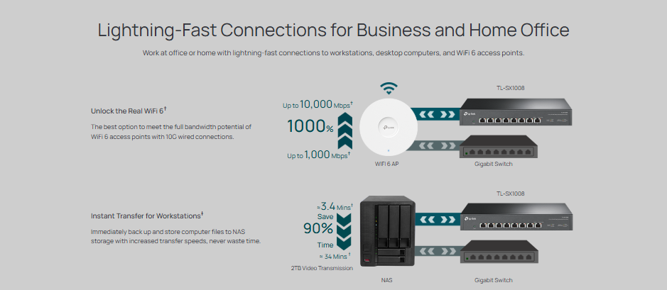 Home/NETWORKING/SWITCHES/TP-Link TL-SX1008 8-Port 10G Desktop/Rackmount Switch TP-Link TL-SX1008 8-Port 10G Desktop/Rackmount SwitchRM 1,159.00 8-Port 10G/Multi-Gig Ethernet Switch: 2 × 10G SFP+ Ports: Supports high-speed fiber connections. 6 × 2.5G RJ45 Ports: Supports Multi-Gig speeds up to 2.5Gbps. Unmanaged Switch: Plug-and-play operation with no configuration required. High-Speed Connectivity: Ideal for bandwidth-intensive applications like gaming, streaming, and large file transfers. Energy Efficient: Advanced energy-saving technology reduces power consumption. Compact and Silent Design: Fanless design ensures silent operation, perfect for home or office use. Durable Metal Housing: Provides robust protection and heat dissipation. Compatibility: Works with a wide range of devices, including PCs, NAS, and gaming consoles. SKU: TP-Link TL-SX1008 Categories: NETWORKING, SWITCHES TP-Link TL-SX1008 8-Port 10G Desktop/Rackmount Switch quantity Add to cart Description Additional information Reviews (0) Weight 3 kg Dimensions 40 × 30 × 20 cm Reviews There are no reviews yet. Be the first to review “TP-Link TL-SX1008 8-Port 10G Desktop/Rackmount Switch”Cancel ReplyYour email address will not be published. Required fields are marked *Your rating * Rate… Perfect Good Average Not that bad Very poor Name *Email *Your review * Save my name, email, and website in this browser for the next time I comment. Submit Related products D-Link DWR-932-D3 4G LTE N300 Mobile Router with OLED Display RM 260.00 Add to cart D-Link DWR-953 4G LTE Wireless AC1200 4 Port Gigabit LAN Router- Build In SIM Card Slot RM 432.00 Add to cart HPE OfficeConnect 1420 8G PoE+ (64W) Switch (JH330A) RM 650.00 Add to cart D-Link DWM-315 4G LTE Cat 6 Industrial Mobile VPN Router, 2 x Micro-SIM Slots + 1 Port WAN/LAN + 1 LAN + 2 SMA Antenna RM 2,350.00 Add to cart