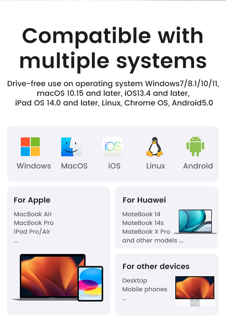 – Compatible: Windows 7-11/MacOS 10.5 & Later/iOS 13.4 & Later/iPadOS 14 & Later/ Linux/ Chrome/ Android 5.0 & Later