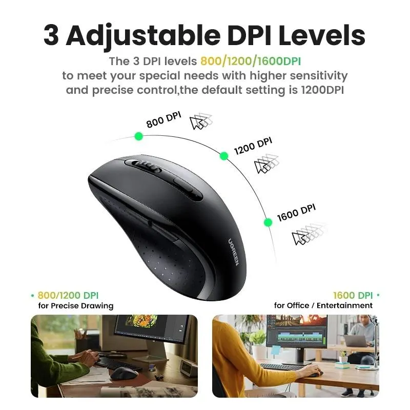 UGREEN ERGONOMIC SHAPE DESIGN WIRELESS MOUSE 2.4 GHZ WITH 6 BUTTON